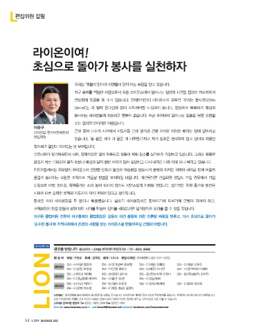 Lion誌는 한국간행물 윤리위원회의 윤리헌장 및 강령을 준수합니다. 라이온지에 게재된 글과 사진의 무단복제를 금합니다. 저작권이 라이온스에 있기 때문입니다.