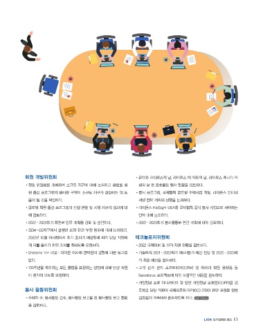 • 100주년을 축하하는 모든 클럽을 표창하는 방법에 대해 담당 직원 • 고객 관계 관리 소프트웨어 (CRM) 및 차세대 회원 플랫폼 등