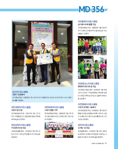 대전갑천클럽 (회장 : 이상호)은 7월 19일 대 청아클럽 (회장 : 유정원)은 7월 16일 대전시