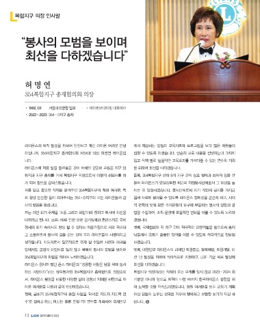 히 항상 든든한 힘이 되어주시는 354–D지구의 모든 라이온들께 감 힘써 사회에 봉사할 수 있도록 라이온스 정체성을 굳건히 하고, 시대