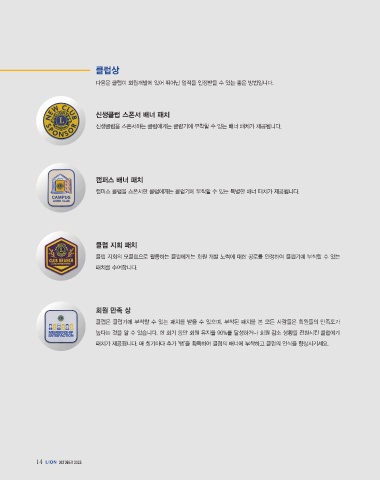 높다는 것을 알 수 있습니다. 한 회기 동안 회원 유지율 90%를 달성하거나 회원 감소 상황을 전환시킨 클럽에게