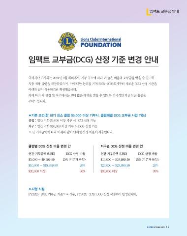 임팩트 교부금(DCG) 산정 기준 변경 안내