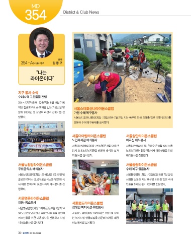 적인 집중호우로 큰 피해를 입은 가평군을 방 서울스타호산나라이온스클럽