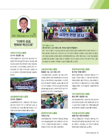새여수라이온스클럽 족이 참석한 가운데 ‘355–B3지구의 날’ 네이밍데이 행사를 개최했다. 또한 8월 한 달 동안