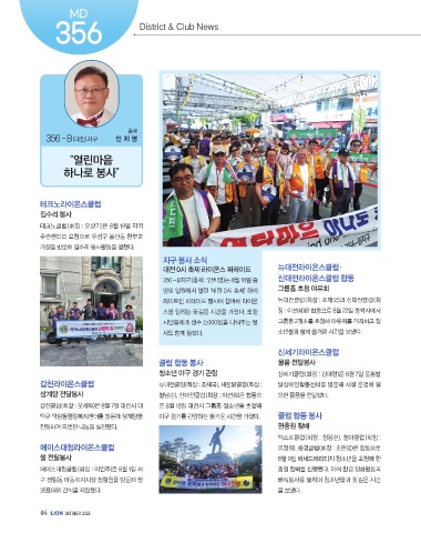 356–B지구 (총재 : 안치영)는 8월 16일 중 신대전라이온스클럽 합동