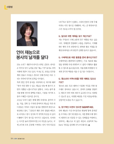 은 뛰어난 언어 능력을 살린 ‘재능 기부’ 봉사로 지역 할 수 있도록 돕고싶습니다. 이를 통해 회원들이 국