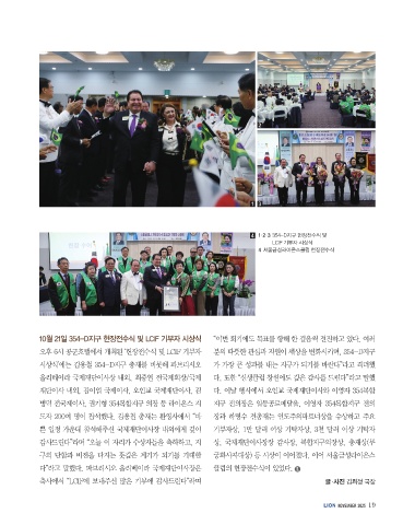 10월 21일 354-D지구 헌장전수식 및 LCIF 기부자 시상식 “이번 회기에도 목표를 향해 한 걸음씩 전진하고 있다. 여러