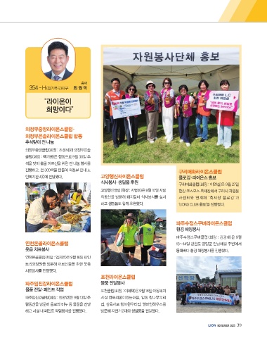 인복지관 4곳에 전달했다. 고양행신라이온스클럽 플로깅·라이온스 홍보