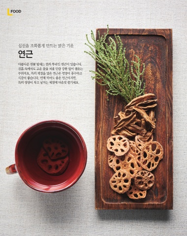 FOOD 심신을 조화롭게 만드는 맑은 기운 연근 아름다운 연꽃 밑에는 연의 뿌리인 연근이 있습니다. 진흙 속에서도 고운 꽃을 피울 만큼 강한 힘이 샘솟는 부위지요. 특히 제철을 맞은 연근은 영양이 풍부하고 식감이 좋습니다. 언제 먹어도 좋은 연근이지만, 특히 영양이 차고 넘치는 제철에 마음껏 즐기세요. 54 november 2025