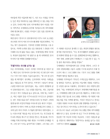 돕는 사람들을 본 적이 있어요. 아버지가 그분들이 라이온 암 환자를 치료하고, 굶주리는 이들에게 식량을 지원하는